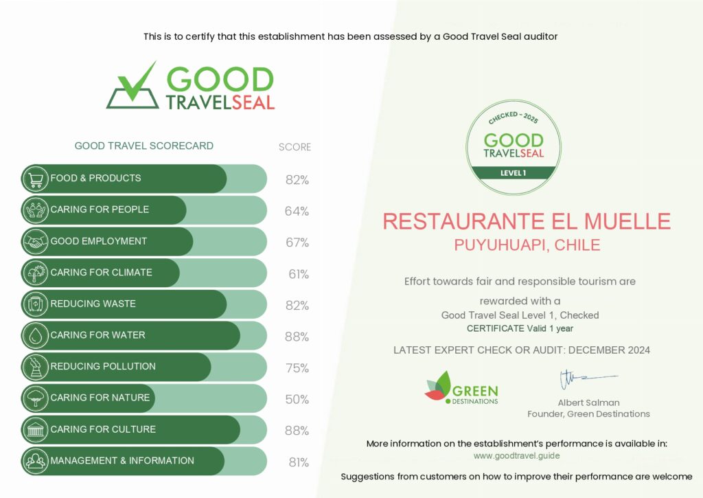 Our story begins on a wooden boat in the Puyuhuapi canals, where we wove together ideas and dreams about our town. We began the project with the conviction of sharing the Patagonian flavors and making them part of an experience in the southern part of the world. Today we continue with the same purpose, where our main objective is to offer a menu based on seafood from our southern canals and local organic gardens.